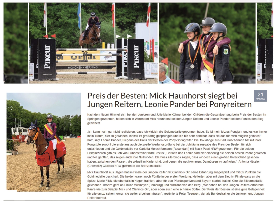 Leonie Pander gewinnt Gold beim Preis der Besten in Warendorf. Artikel: Spring-Reiter.de